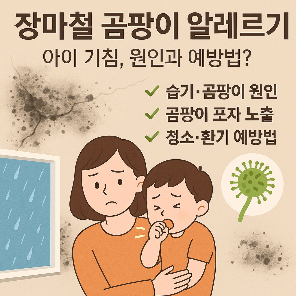 장마철은 고온다습한 환경으로 인해 집 안 곳곳에 곰팡이가 피기 쉬운 시기입니다. 특히 환기가 잘되지 않는 실내 구조, 옷장이나 침구류, 화장실, 욕실 타일 틈 등은 곰팡이가 번식하기에 딱 좋은 환경이죠. 문제는 이렇게 발생한 곰팡이가 ‘곰팡이 알레르기’를 유발하며 아이의 기침, 재채기, 콧물, 천식 증상까지 불러올 수 있다는 점입니다.