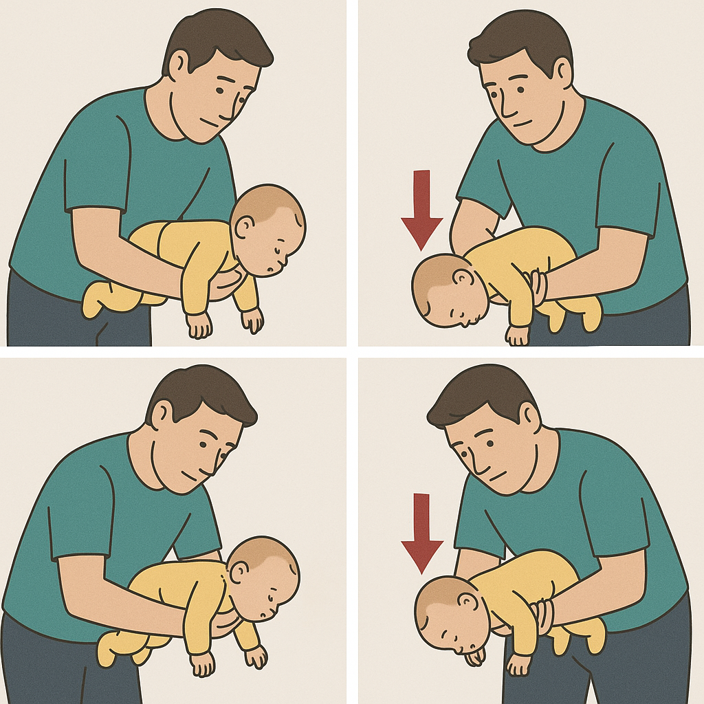 💡 주의: 아기를 흔들거나 입으로 강하게 불어넣는 것은 폐 손상 위험이 있습니다.